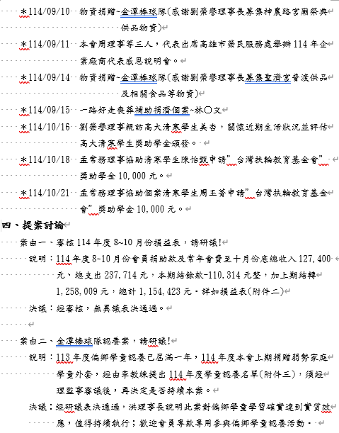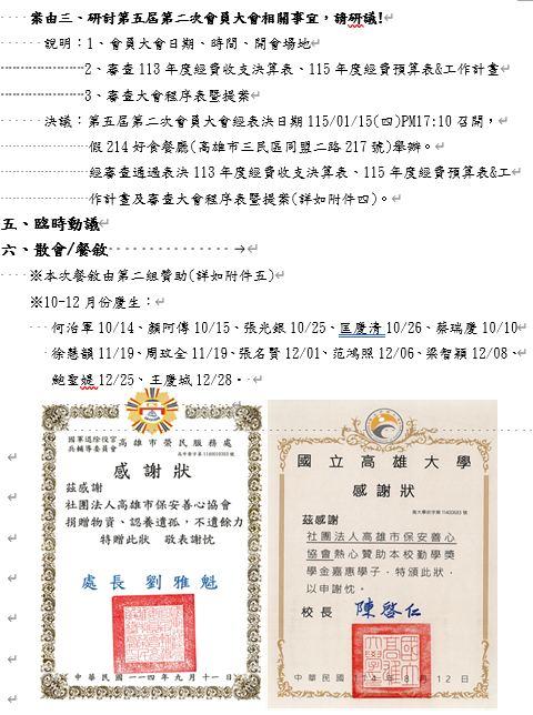 1141120第五屆第四次理監事暨顧問聯席會議紀錄